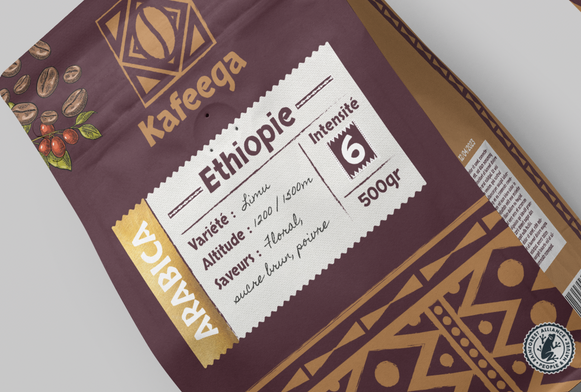 Chaque élément graphique reflète les valeurs de la marque : qualité, tradition et modernité. Les teintes chaudes évoquent les paysages éthiopiens, tandis que les motifs rappellent la culture locale.